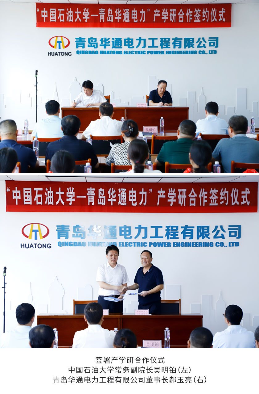 黨的二十大報告提出:“必須堅持科技是第一生產力、人才是第一資源、創新是第一動力。”為促進政產學研緊密結合,打造“校企地”協同創新人才培養體系,9月13日,青島華通電力工程有限公司與中國石油大學(華東)新能源學院舉行產學研合作簽約儀式。濱海街道黨工委副書記、辦事處主任沈久波,黨工委副書記李新,青島華通電力董事長郝玉亮,中國石油大學古鎮口校區綜合辦主任劉濤、學院常務副院長吳明鉑出席儀式。