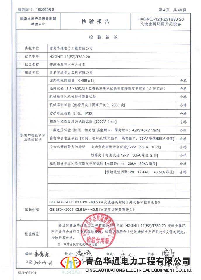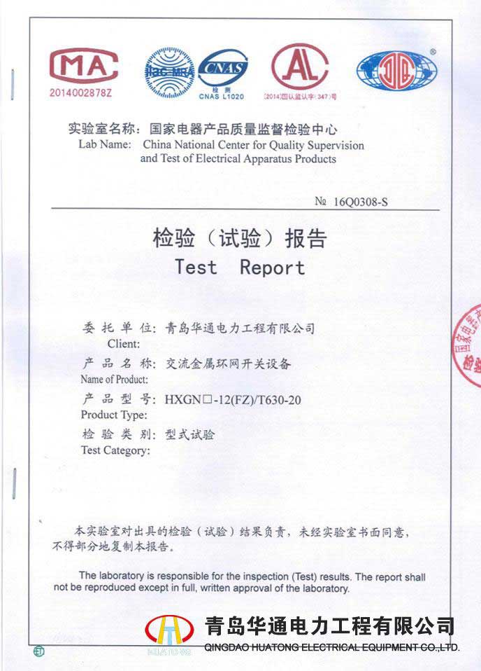 YBM-12高壓/低壓預裝式變電站檢驗報告