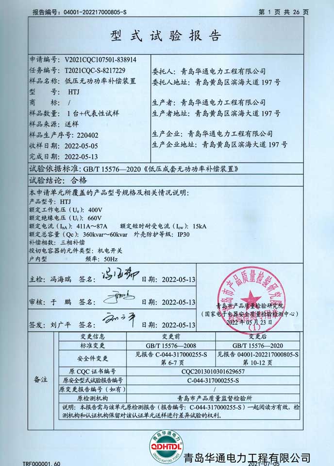 JP低壓綜合配電柜檢驗(yàn)報(bào)告